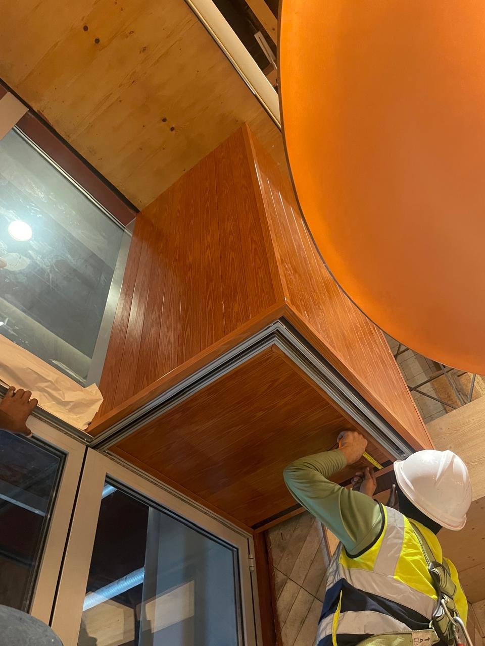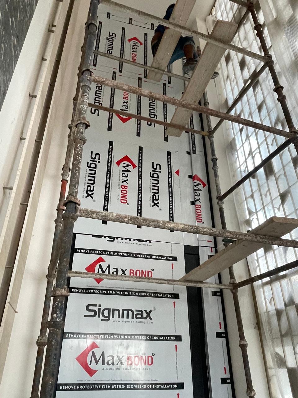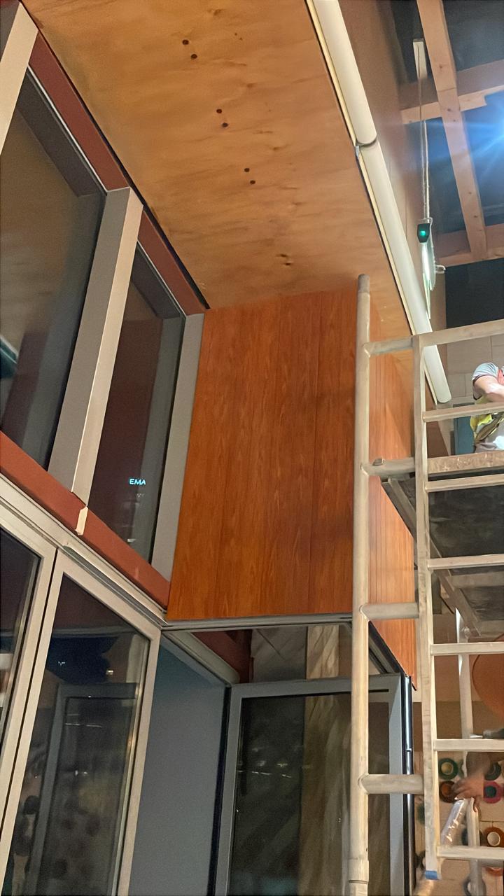 Group floor near water fountain Inside and outside Aluminium FR Cladding
