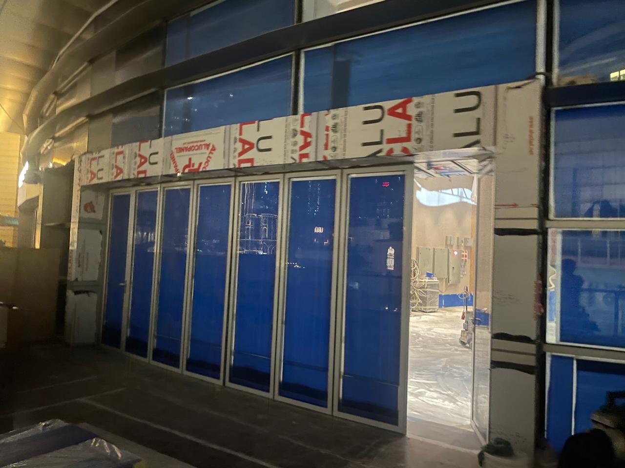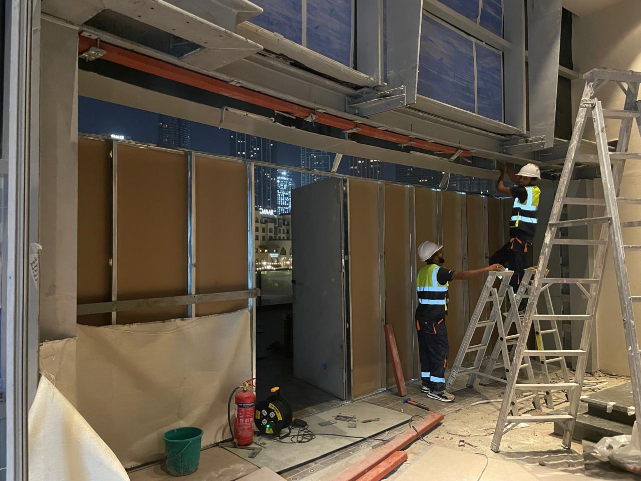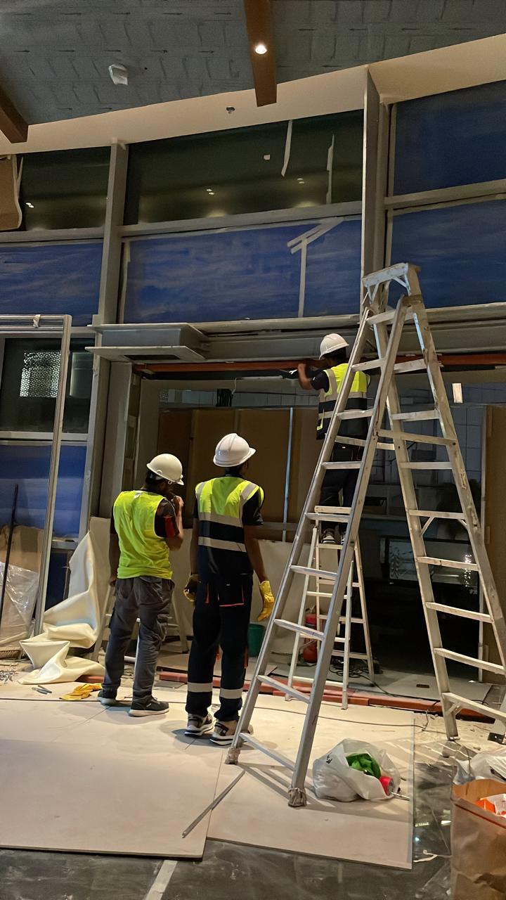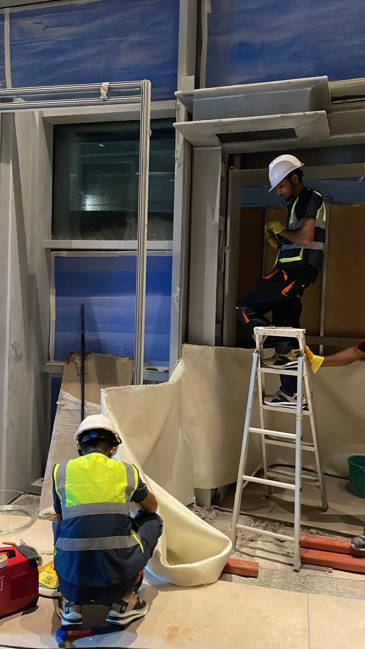 Group floor near water fountain Inside and outside Aluminium FR Cladding